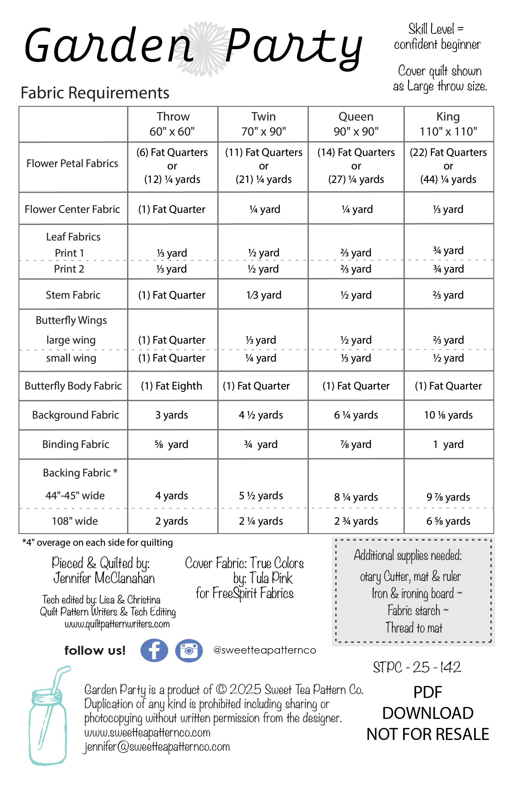 A Fat Quarter–friendly design that’s full of summer charm! This quilt is perfect for adding a touch of sunshine to your home—especially for those of us who can’t seem to grow real flowers. Easy to piece and beginner friendly, it looks great in bright florals or soft pastels for a cheerful seasonal finish.