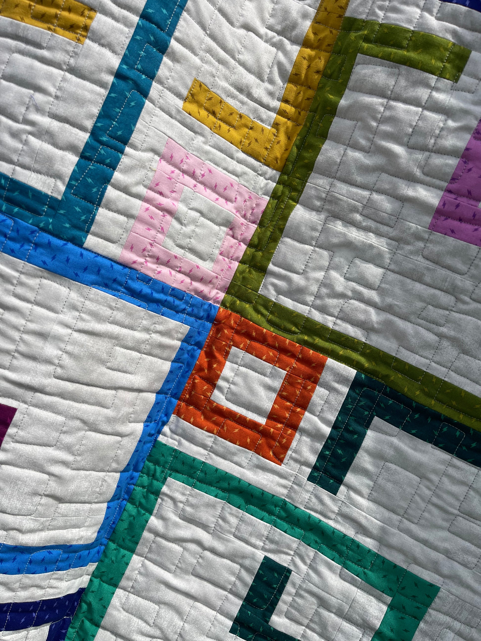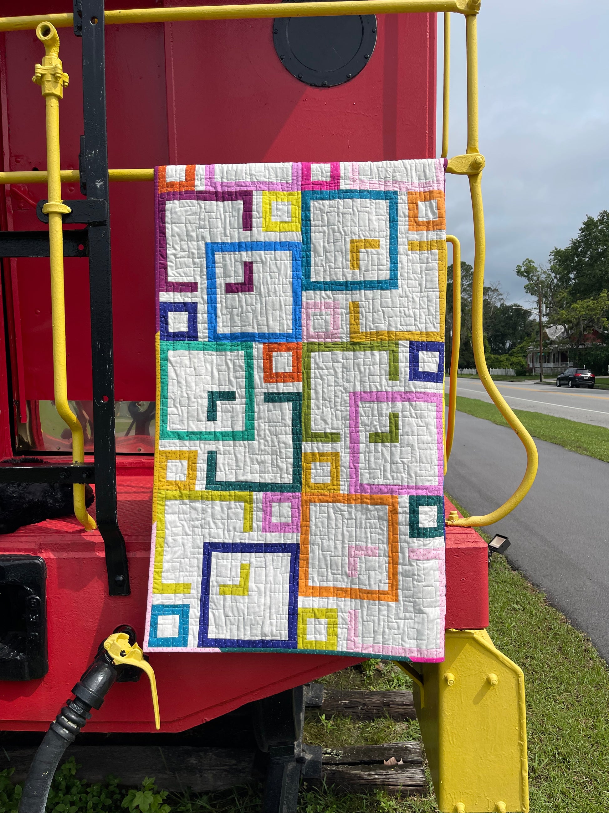 Step outside the box with Out Boxed—a modern, geometric quilt design that combines bold lines and clean structure with playful fabric combinations. This fat quarter friendly pattern is ideal for showcasing your favorite small prints or solids while keeping cutting and piecing simple and straightforward.