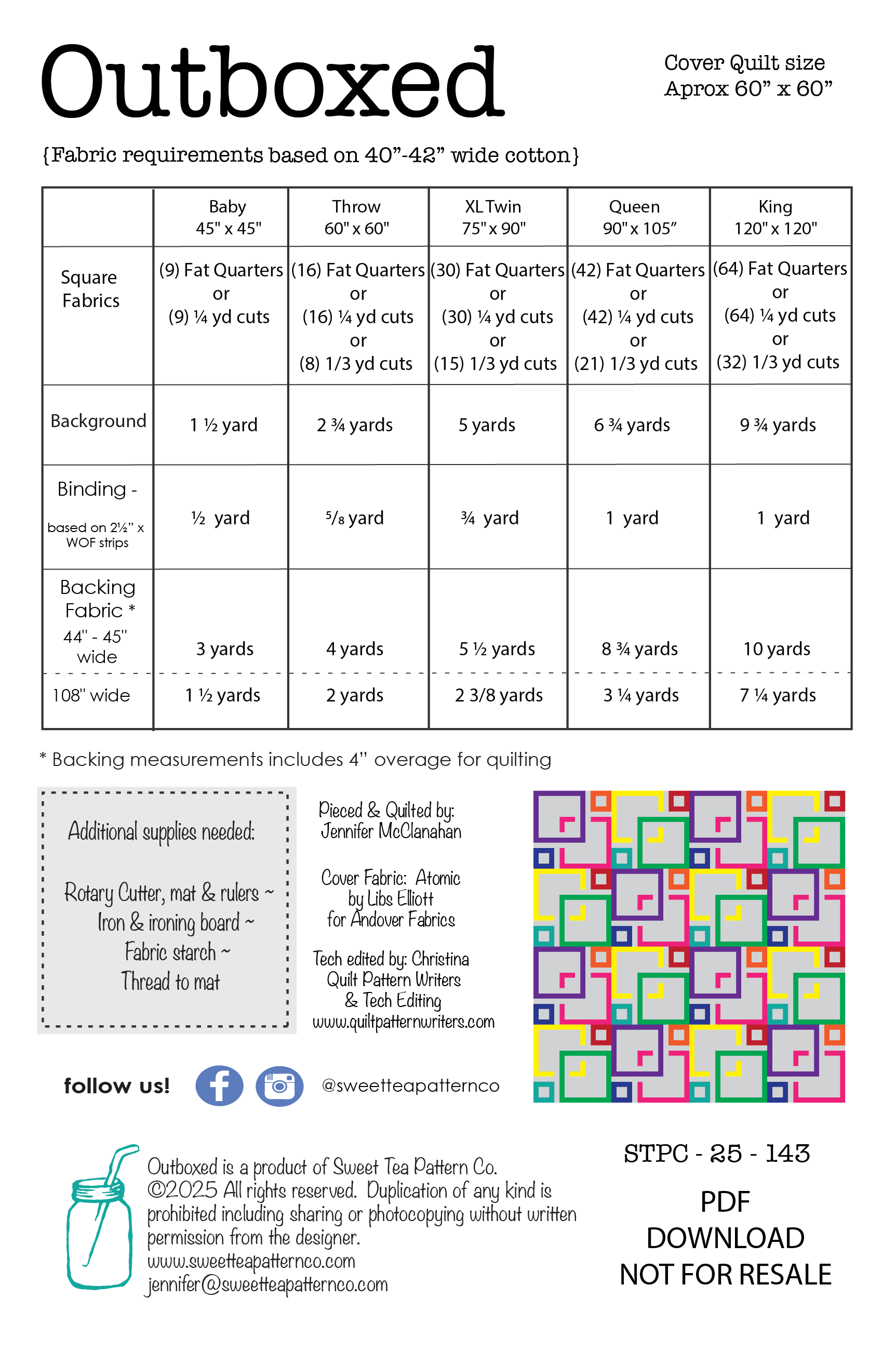 Designed with confident beginners in mind, the pattern features easy-to-follow instructions and clear diagrams. Whether you're quilting for a gift, decor, or just for fun, Out Boxed offers just the right amount of challenge with satisfying, crisp results.
