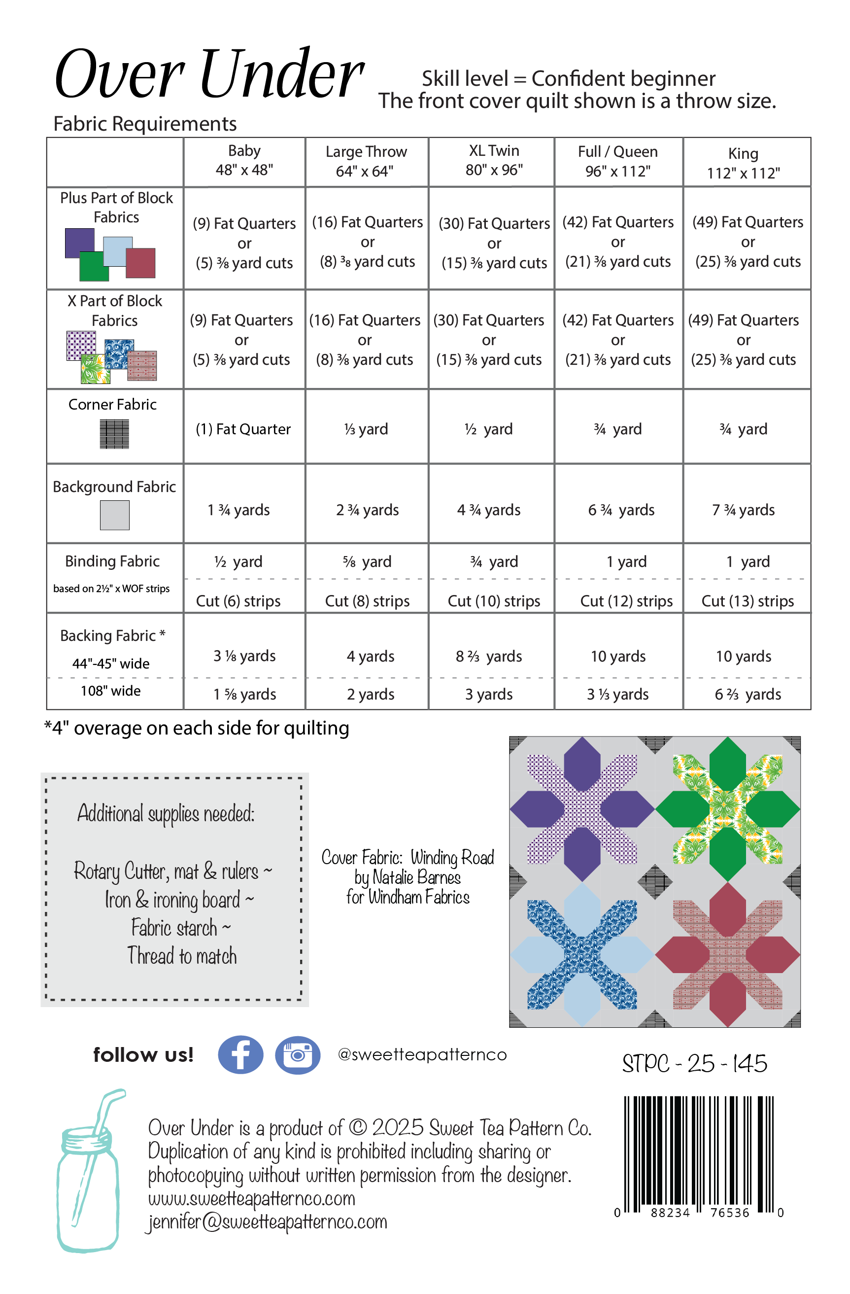 Over Under is a fun, Fat Quarter–friendly quilt that’s perfect for showing off your favorite fabric combinations! Great for confident beginners, this pattern includes full-color instructions and layout diagrams for multiple sizes, making it easy to create a quilt that’s uniquely yours.