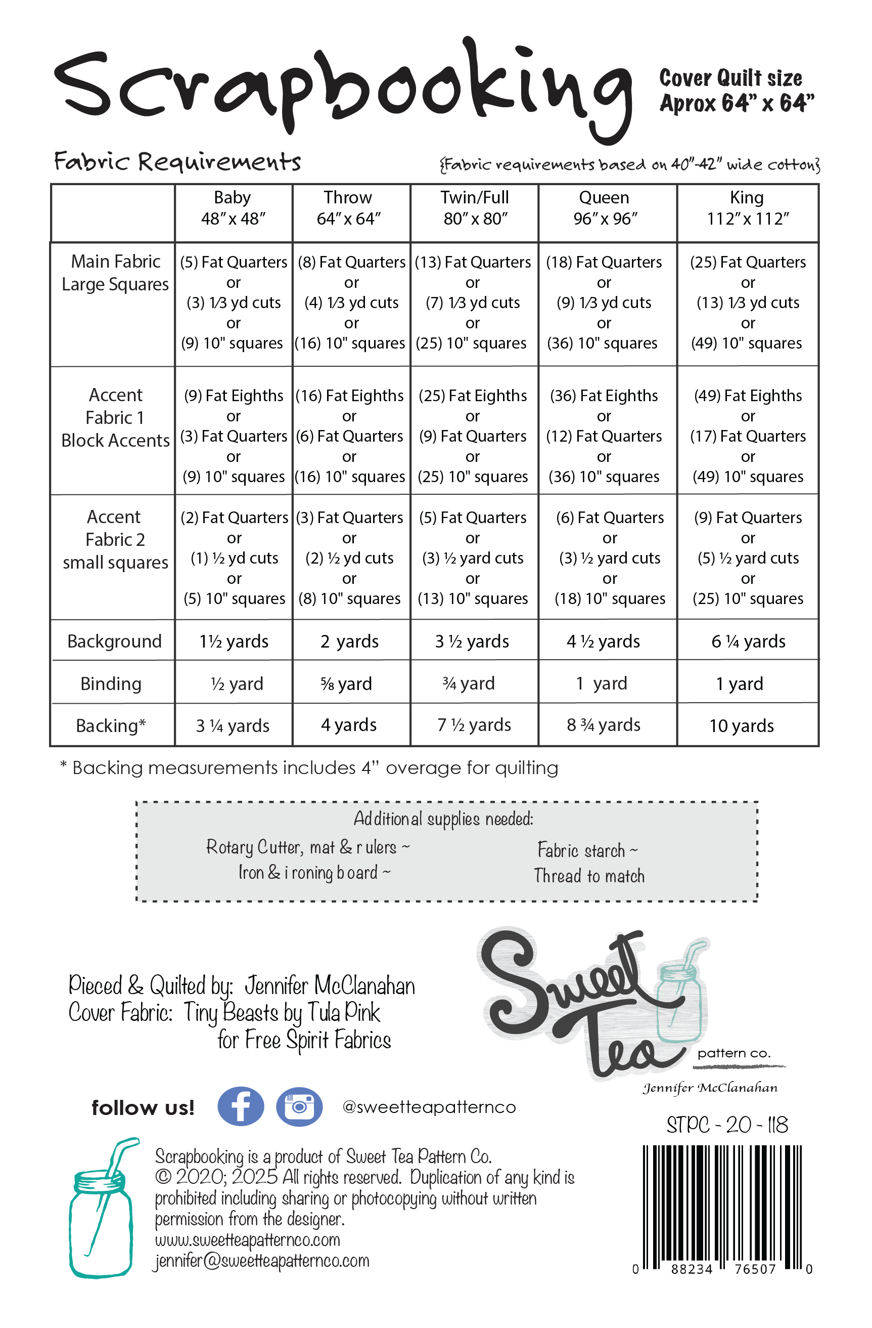 Showcase your favorite prints with this fun and quick quilt pattern, designed with large blocks that let your fabrics shine. Perfect for beginners and experienced quilters alike, the Scrapbooking Quilt comes together quickly and beautifully.